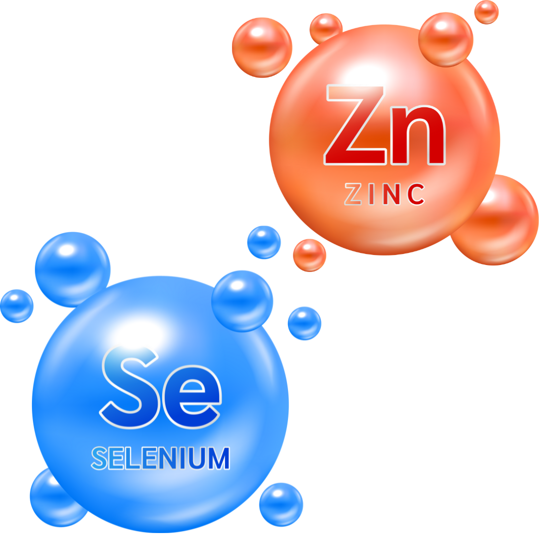Комбинацията от цинк и селен подпомага нормалния растеж и регенерация на космените фоликули, като укрепва корените и намалява прекомерния косопад. Цинкът регулира дейността на мастните жлези и поддържа балансиран, здрав скалп, докато селенът действа като мощен антиоксидант, който защитава клетките от увреждане и преждевременно стареене. Заедно поддържат кератиновата структура на косъма, подобряват неговата еластичност и придават естествен блясък и жизненост.