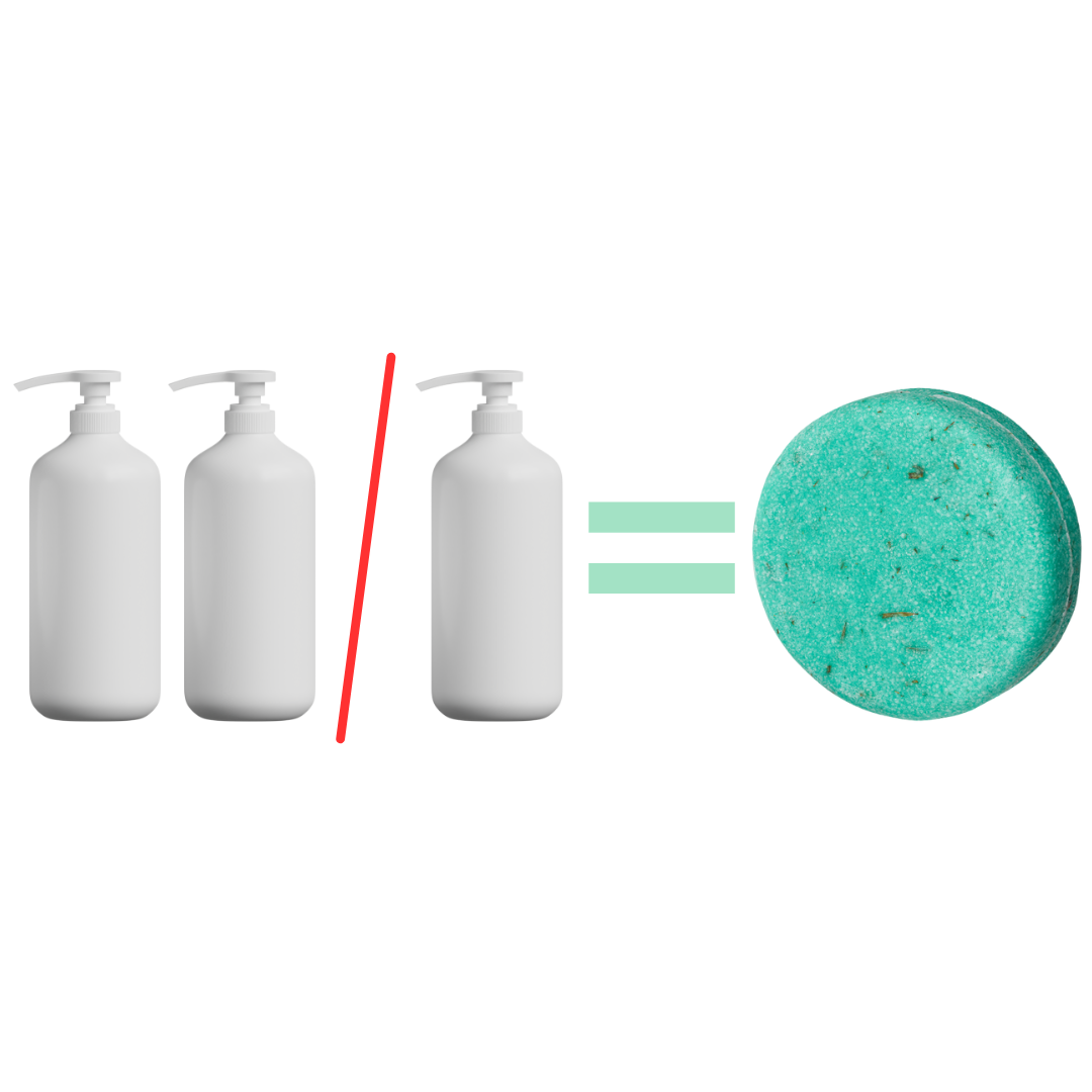 Един твърд шампоан замества до 3 бутилки течен. Еквивалентно това са до 60 измивания.